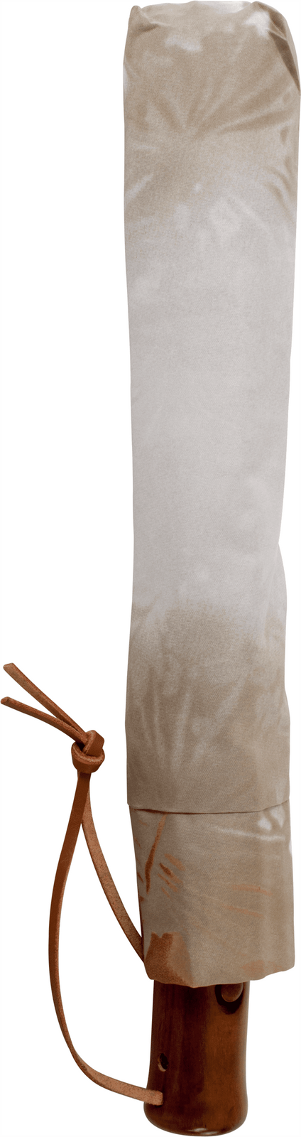 • Klasyczny parasol otwierany automatycznie, z drewnianą prostą rączką i wzorzystym pokryciem wykonanym z poliestru.