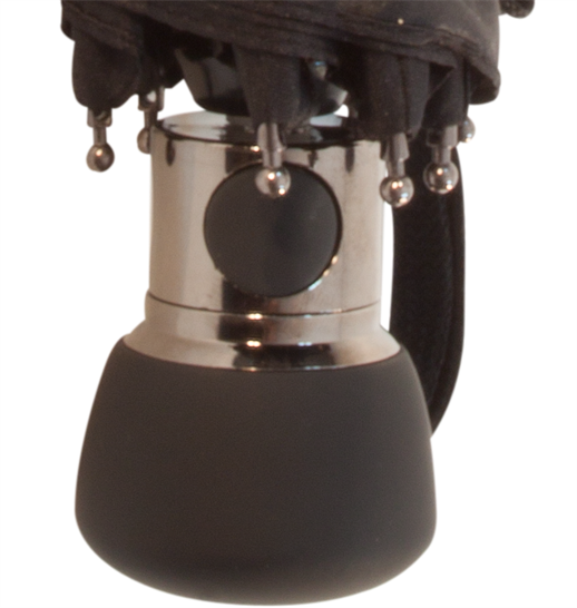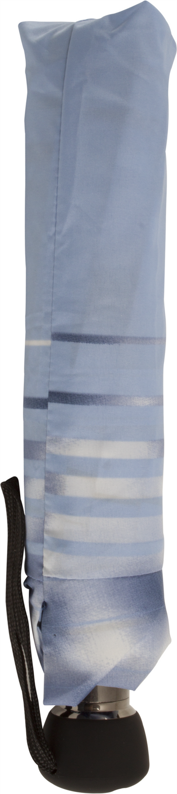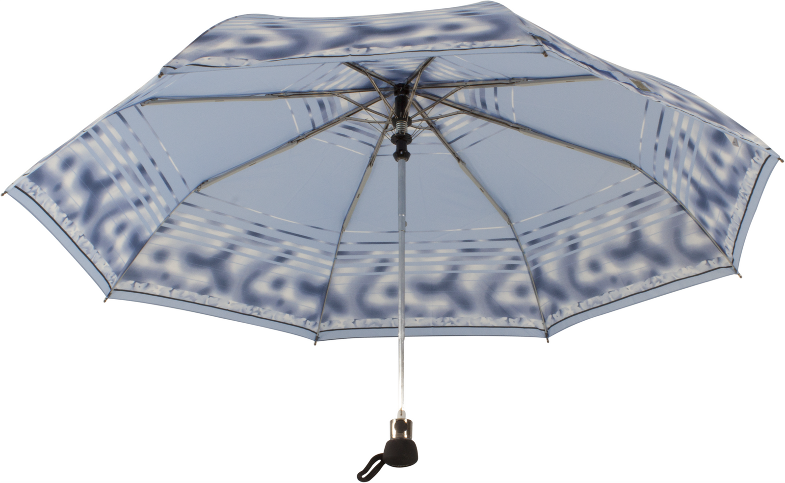 - Parasol otwierany automatycznie, z okrągłą czarną plastikową rączką i wzorzystym pokryciem z poliestru.