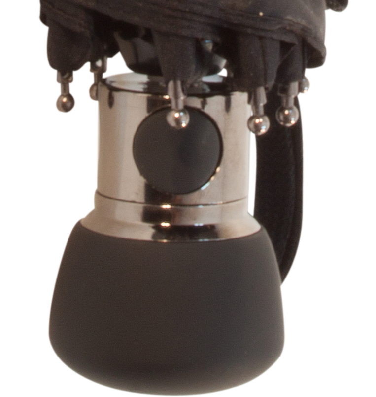 • Parasol otwierany automatycznie, z okrągłą czarną plastikową rączką i wzorzystym pokryciem z poliestru.