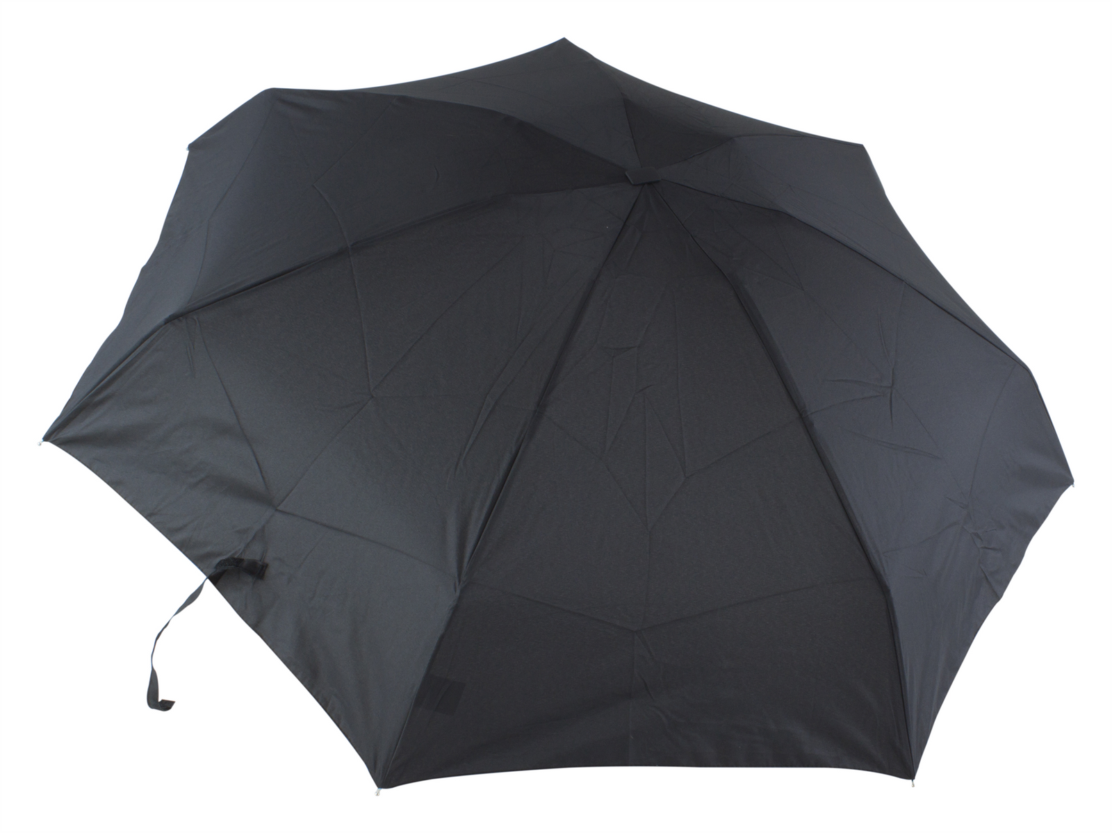 • Ręcznie otwierany parasol z czarnym pokryciem iplastikową czarną prostokątną rączką. Zmieści się w prawie każdej torebce lub neseserze.
