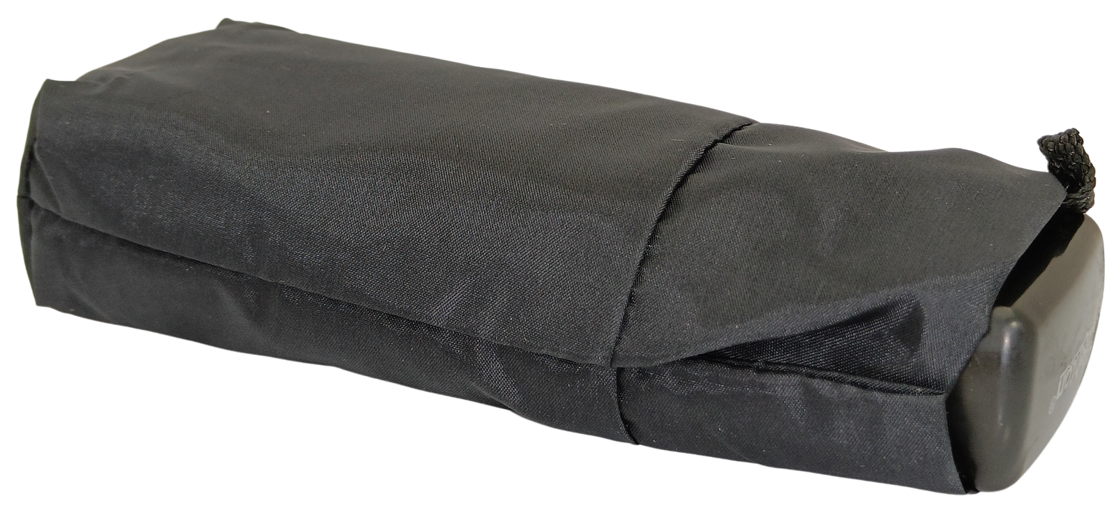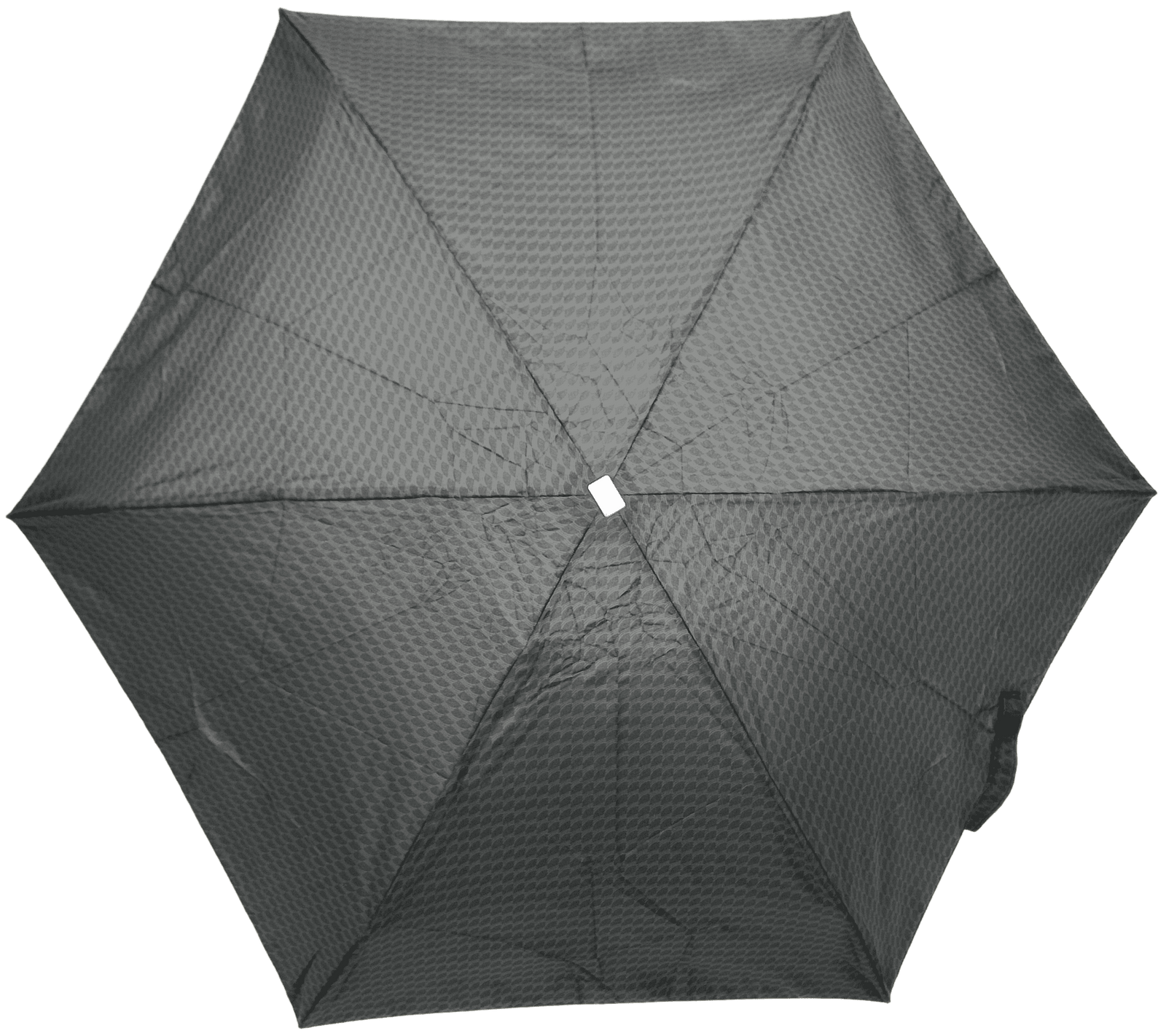 • Lekki i mały parasol otwierany ręcznie, z plastikową prostokątną rączką w kolorze czarnym i pokryciem wzorzystym z poliestru.