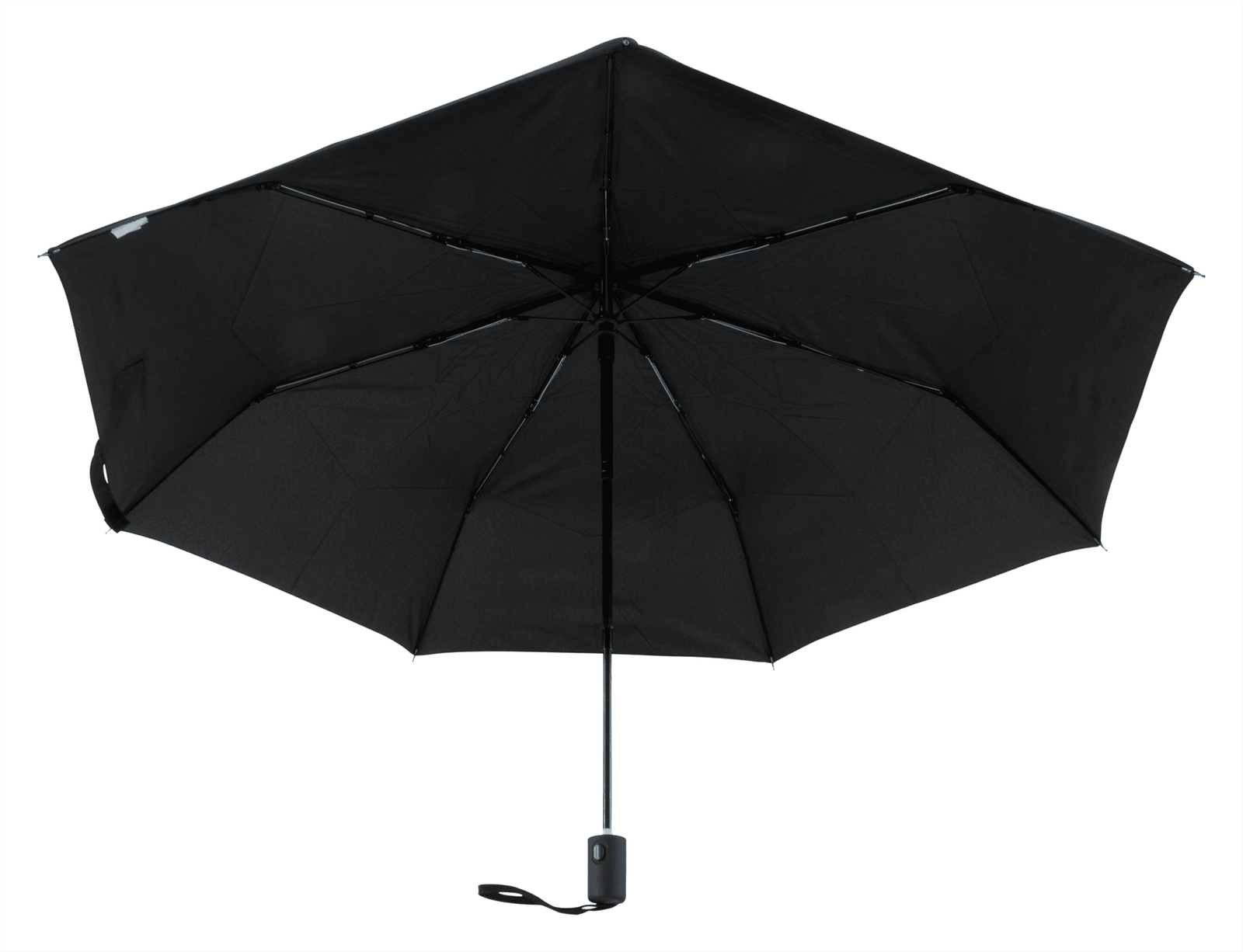 - Automatycznie otwierany i składany parasol z czarnym pokryciem i czarną prostą rączką.