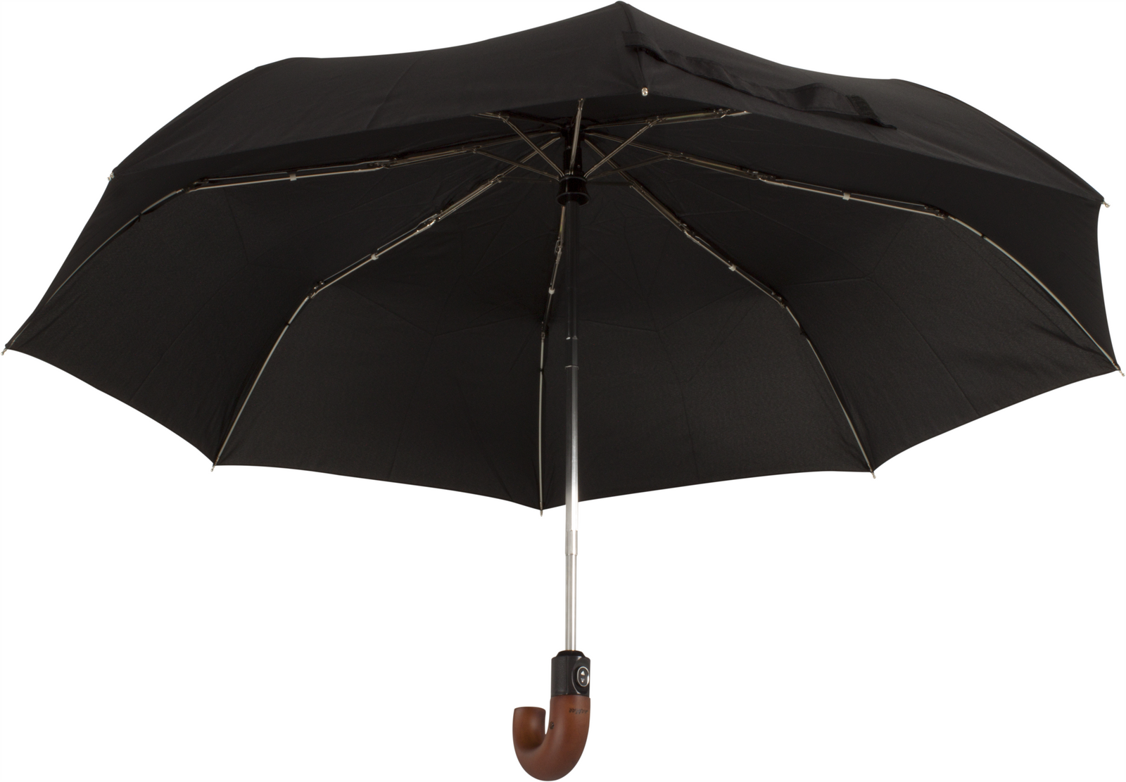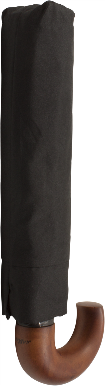 • Automatycznie otwierany i składany parasol z czarnym pokryciem i drewnianą zagiętą rączką.