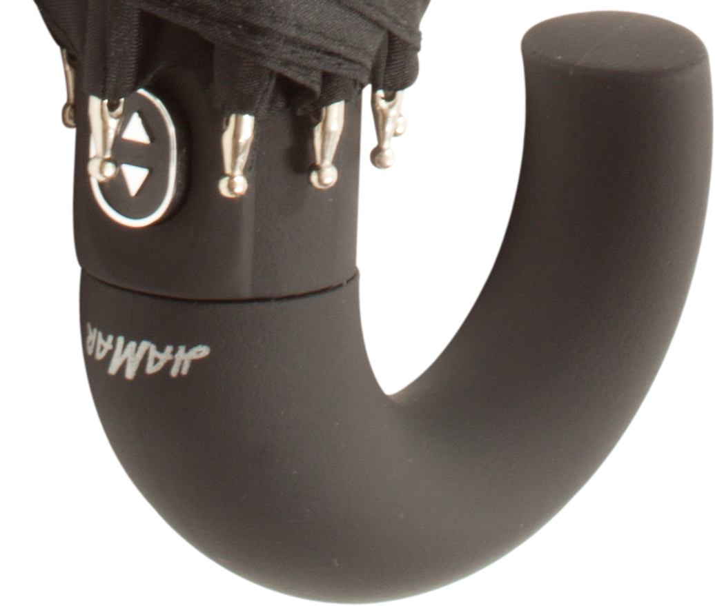 - Automatycznie otwierany i składany parasol z czarnym pokryciem i czarną zagiętą rączką.