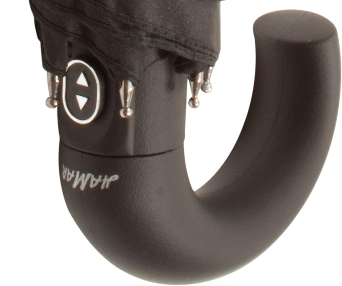 - Automatycznie otwierany i składany parasol z czarnym pokryciem i czarną zagiętą rączką.
