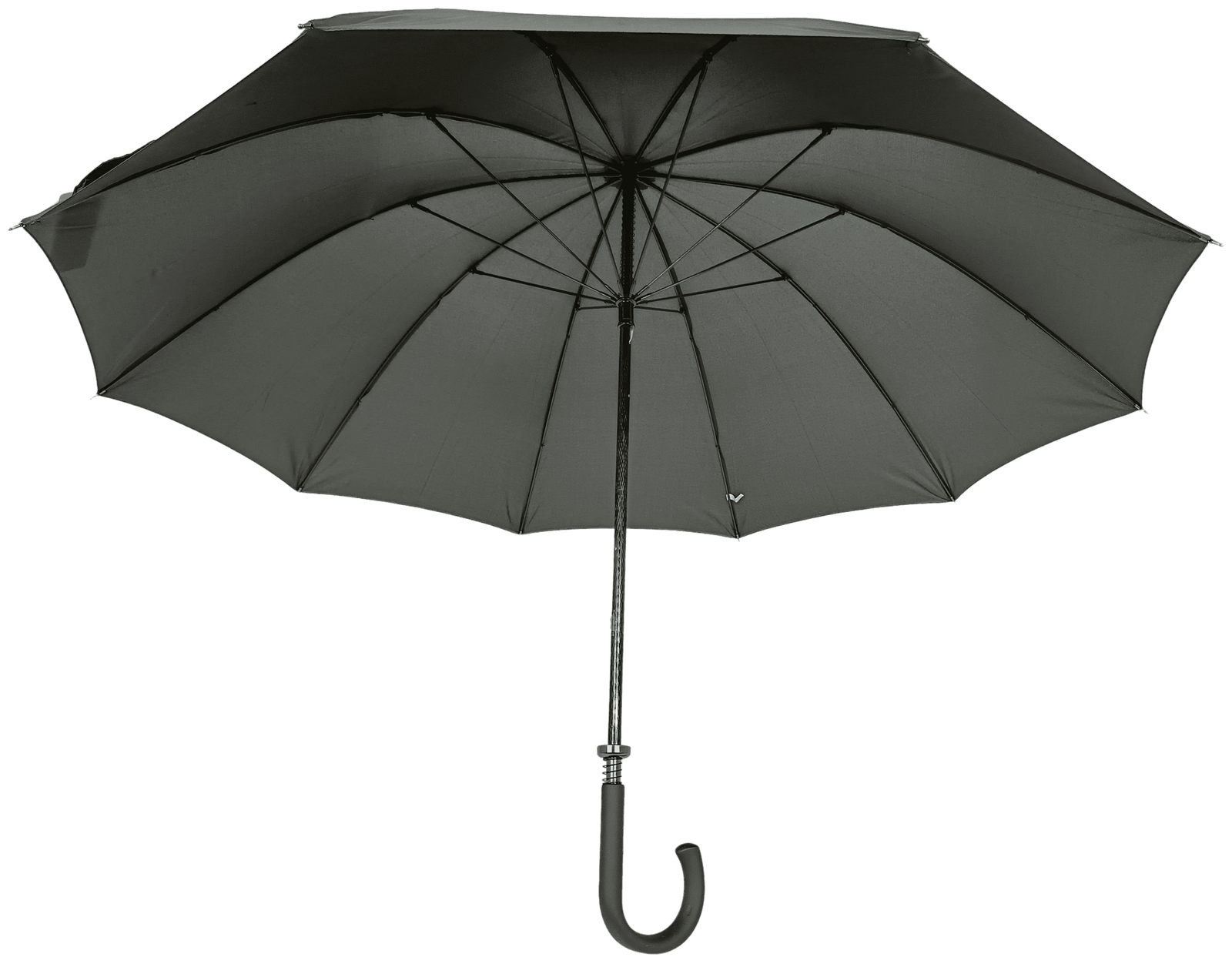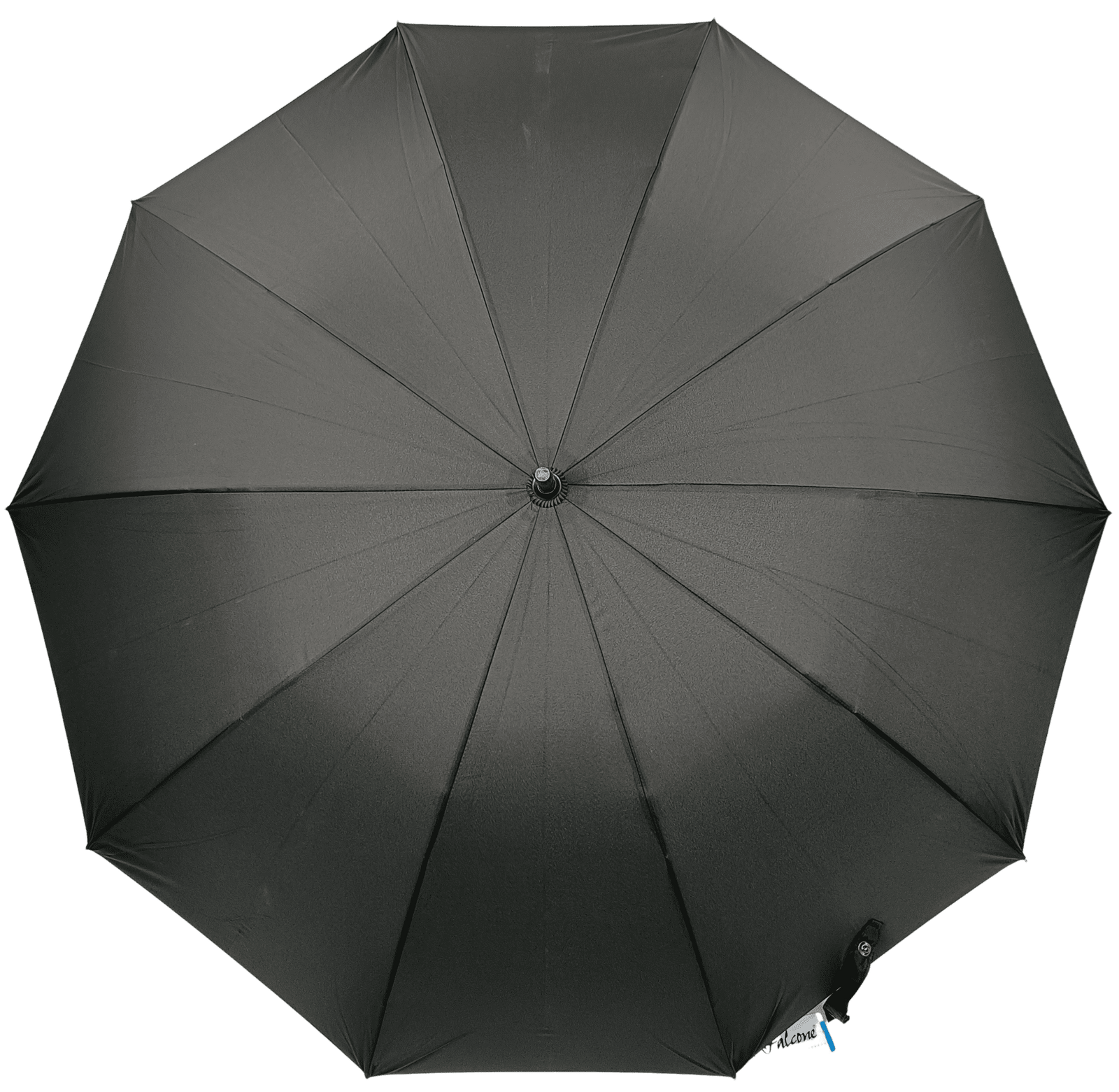 • Ręcznie otwierany długi parasol, z czarną plastikową rączką i czarnym pokryciem z poliestru.
