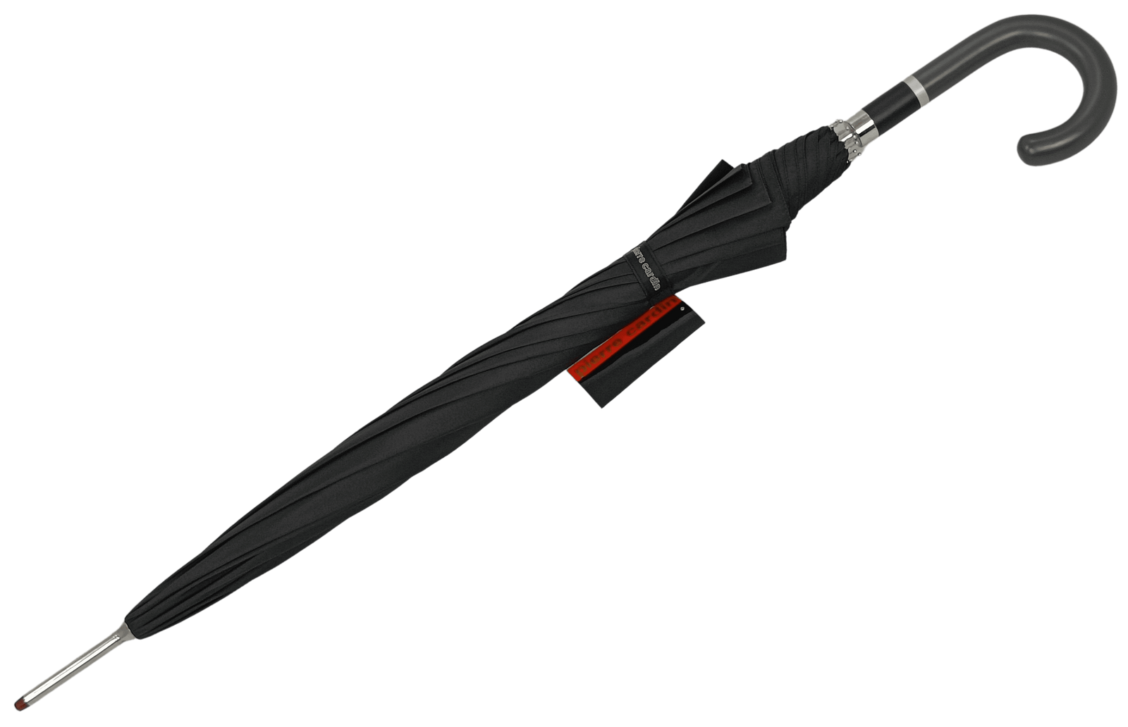 • Automatycznie otwierany 8 segmentowy parasol, z zagiętą plastikową rączką i czarnym pokryciem z poliestru.